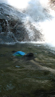 Taking a break to rest our sore butts.But our rear ends were soothed once we jumped into the cold waterfall, which fortunately was isolated, hence we had the whole place to ourselves! We spent another hour or so frolicking in the water and snapping numerous pictures. The sight there can only be understood by those who were there themselves to see it. The tall majestic waterfall that came crashing down on the rocks below was, phew, breathtaking.